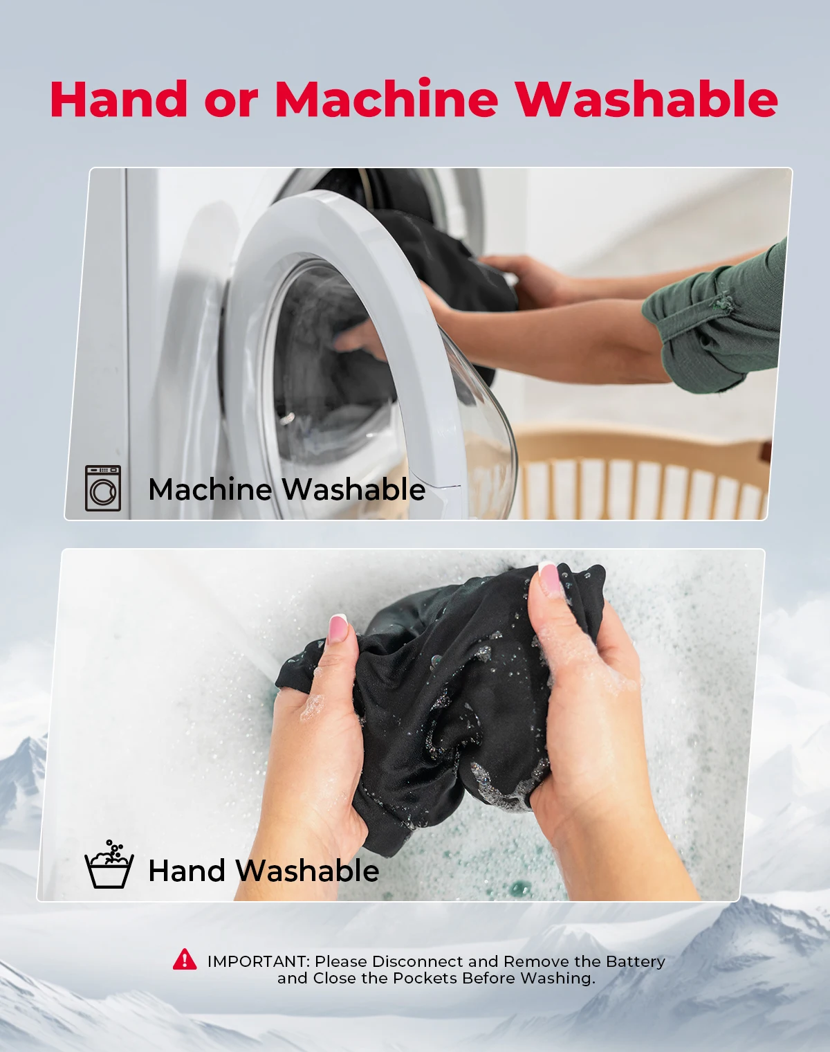【6-Zone Heating】 The heated vest is equipped with 6 heating zones (stomach 2 and back 4), providing you with 360-degree warmth.